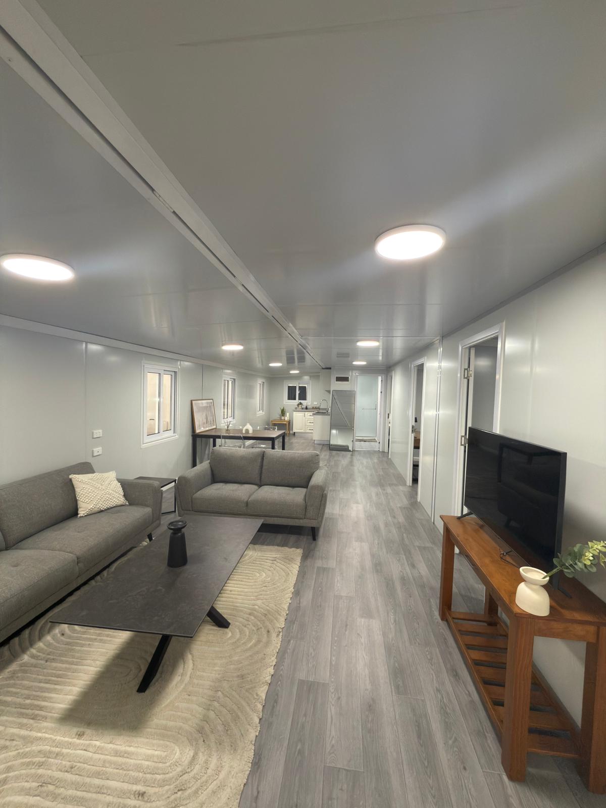 Enjoy our 20FT Modular Cabins – everything you need in a compact, comfortable home! With two cosy bedrooms, a smart toilet setup with separate wet and dry shower areas, and a spacious living room, it's perfect for small families, couples, or anyone needing extra space. Built tough with customisable colour steel exterior panels, and for first-time customers, we’re including a free water heater. Affordable, practical, and ready to go - the ideal choice for those who want comfort wherever they are.
